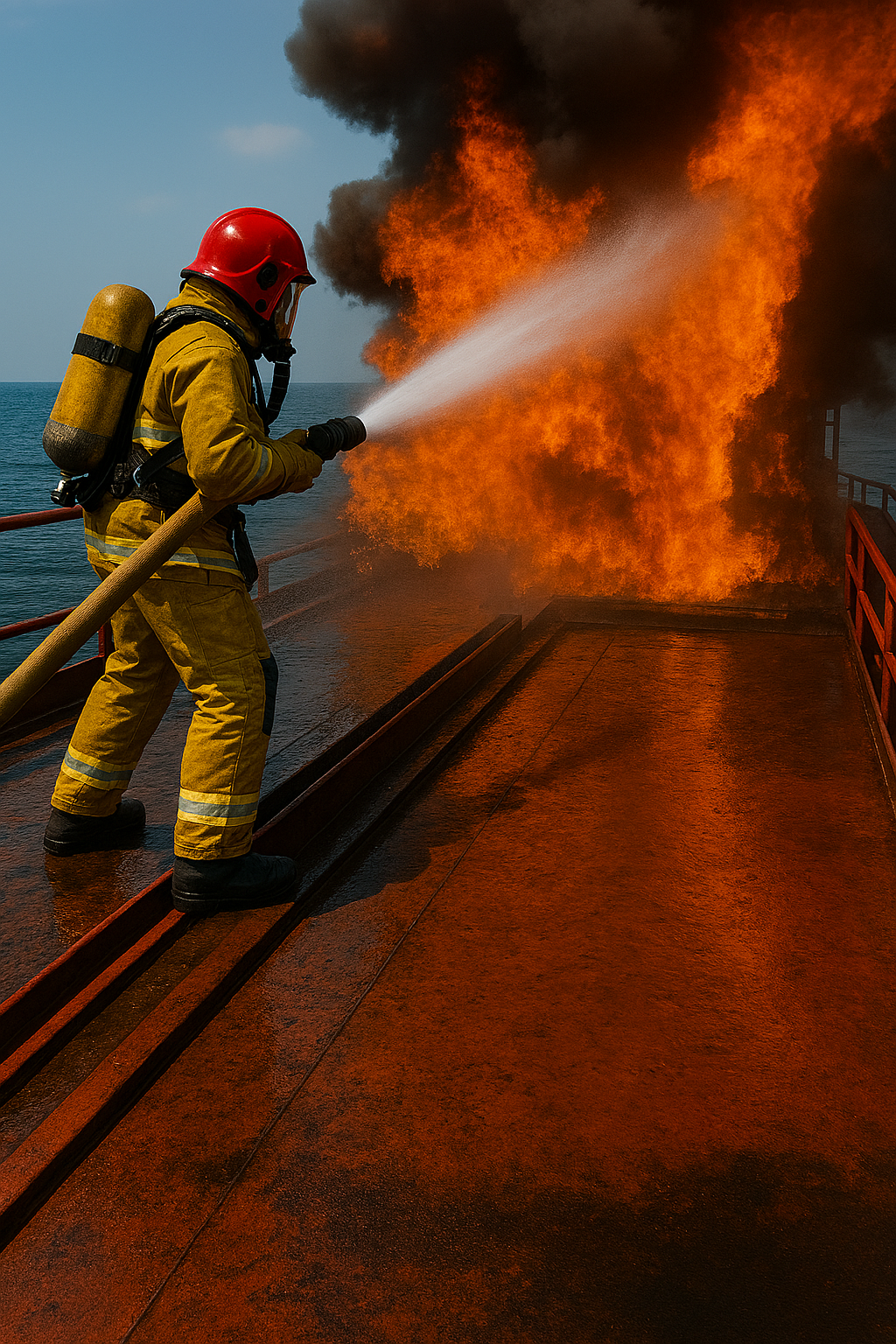 This course provides essential training in the actions required to respond safely and effectively to fires on board, with special emphasis on oil and fuel-related fires. Students learn fire behavior, fire classification, and the specific hazards associated with oil fires. The course covers the correct use of extinguishing agents, fixed and portable firefighting systems, boundary cooling, containment measures, and protection of personnel. Practical procedures for rapid response, communication, teamwork, and coordination during fire emergencies are emphasized to ensure a confident and effective firefighting capability.